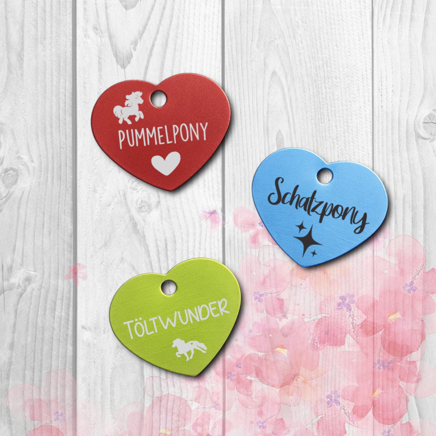 Verleihe deinem Schlüsselbund, Rucksack oder deiner Tasche das gewisse Etwas: Herzförmige Aluminium-Marken, farbenfroh und liebevoll nach deinen Wünschen gestaltet.
