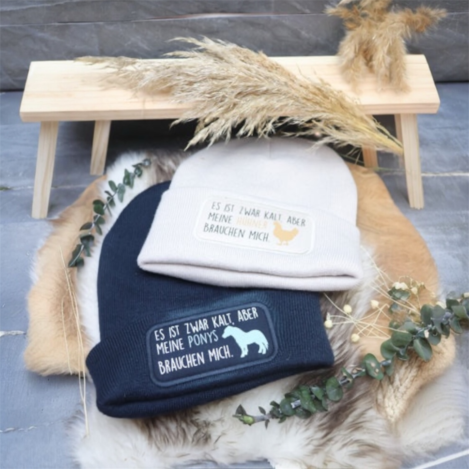 Stylische Beanie mit witzigem Aufdruck (in weiß oder schwarz, je nach Kontrast) - das perfekte Must-have für Herbst und Winter, am Stall oder im Alltag.