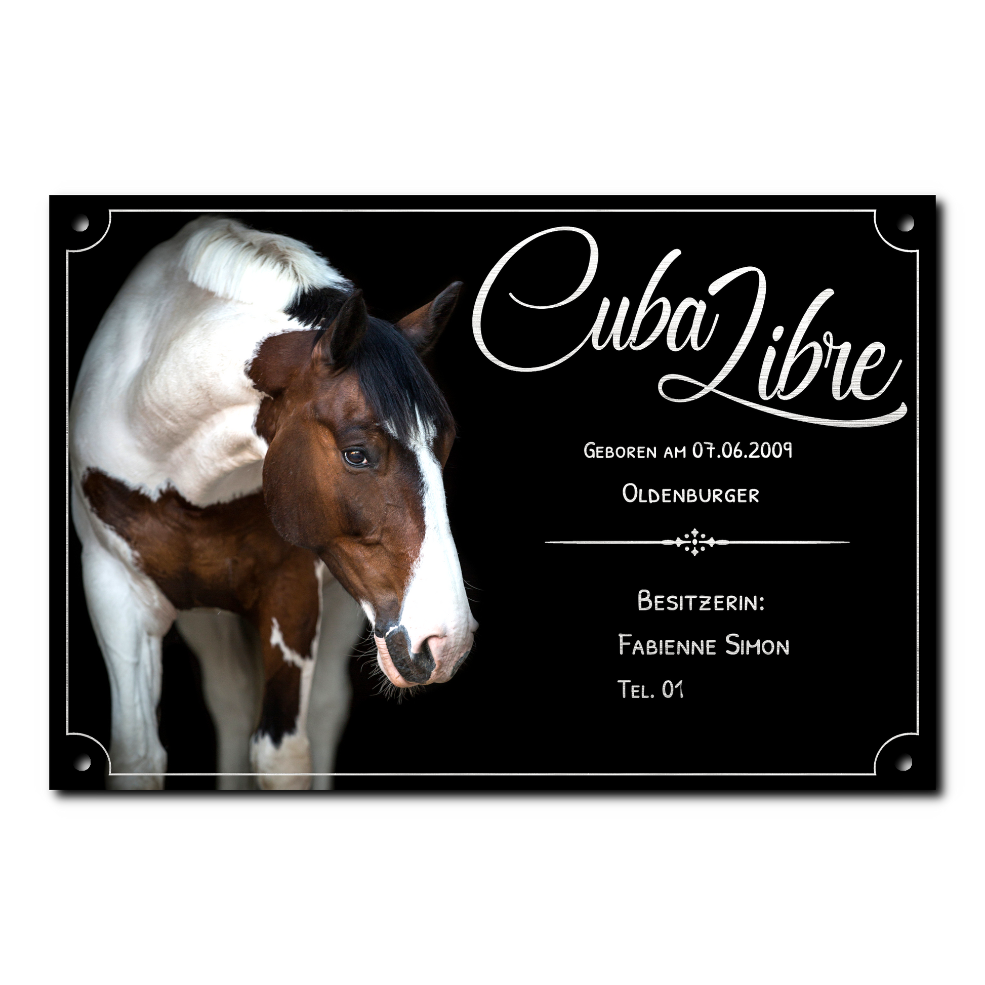 Individuell & flexibel: Ob Name, Motiv oder Foto – jedes Design ist möglich. Wir können dein Pferd sogar freistellen, z. B. für einen schwarzen Hintergrund, damit es perfekt zur Geltung kommt.