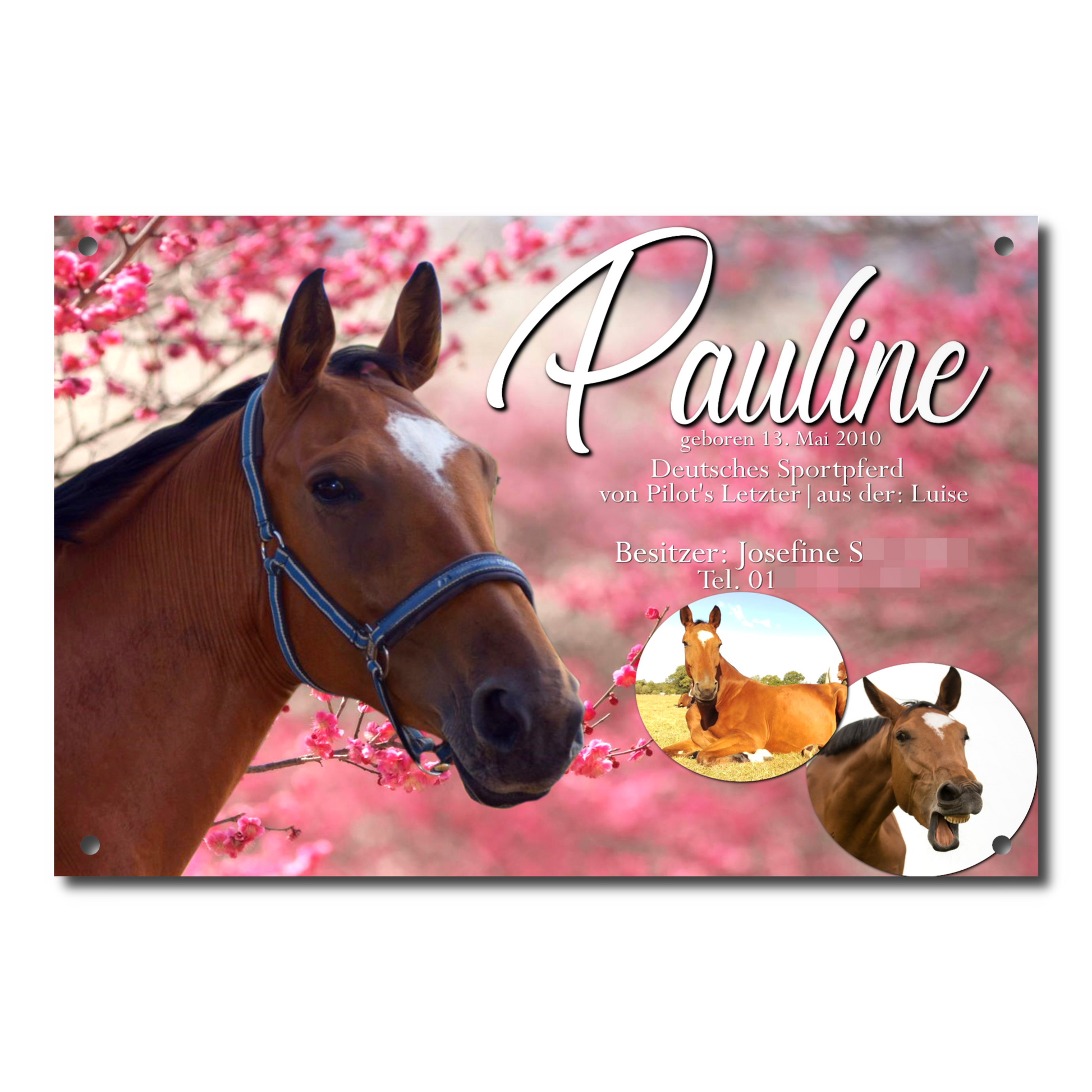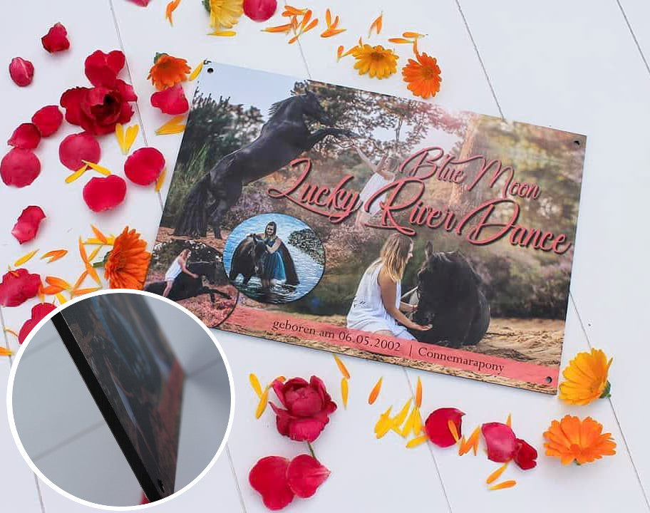 Individuell & flexibel: Ob Name, Motiv oder Foto – jedes Design ist möglich. Wir können dein Pferd sogar freistellen, zum Beispiel für einen schwarzen Hintergrund, damit es perfekt zur Geltung kommt.