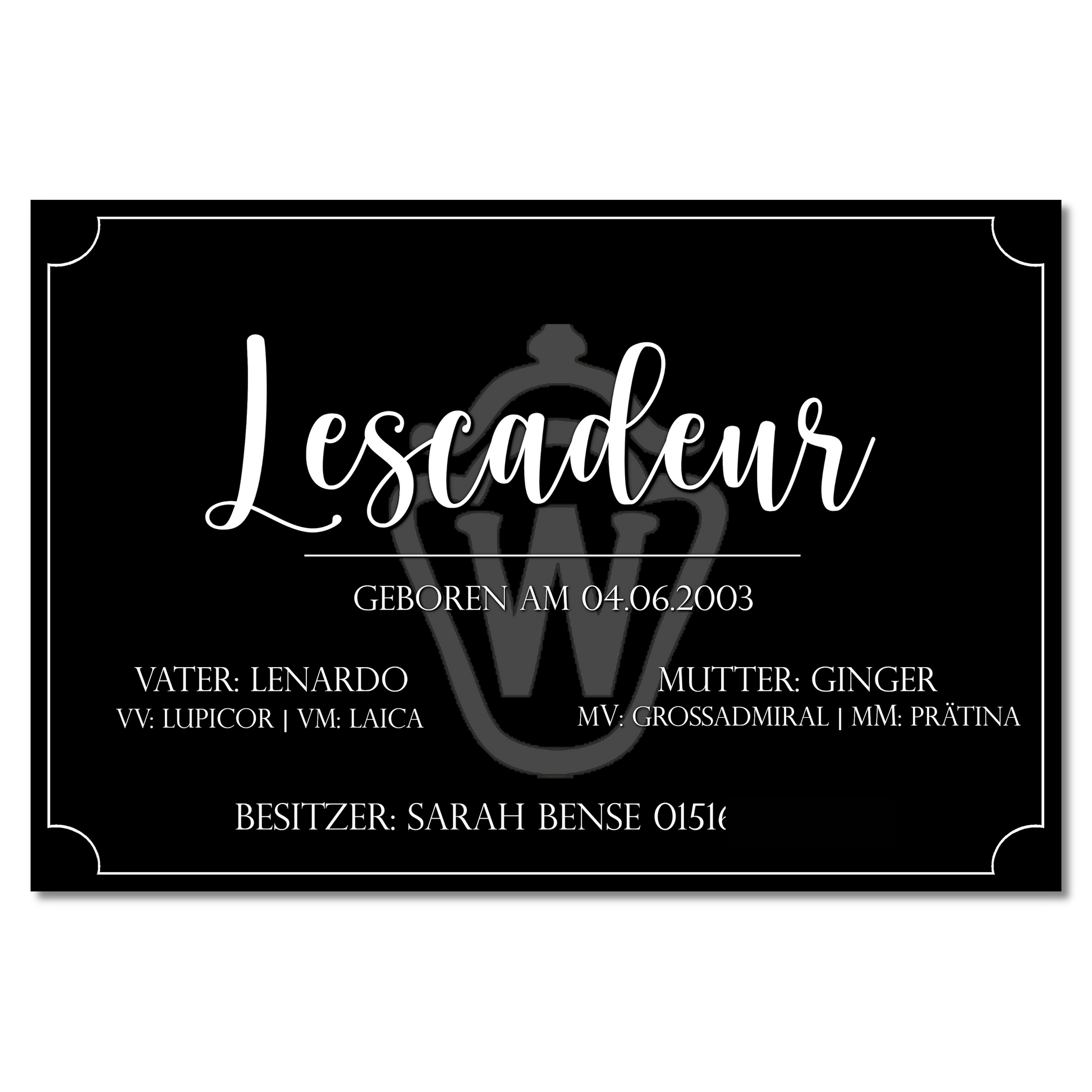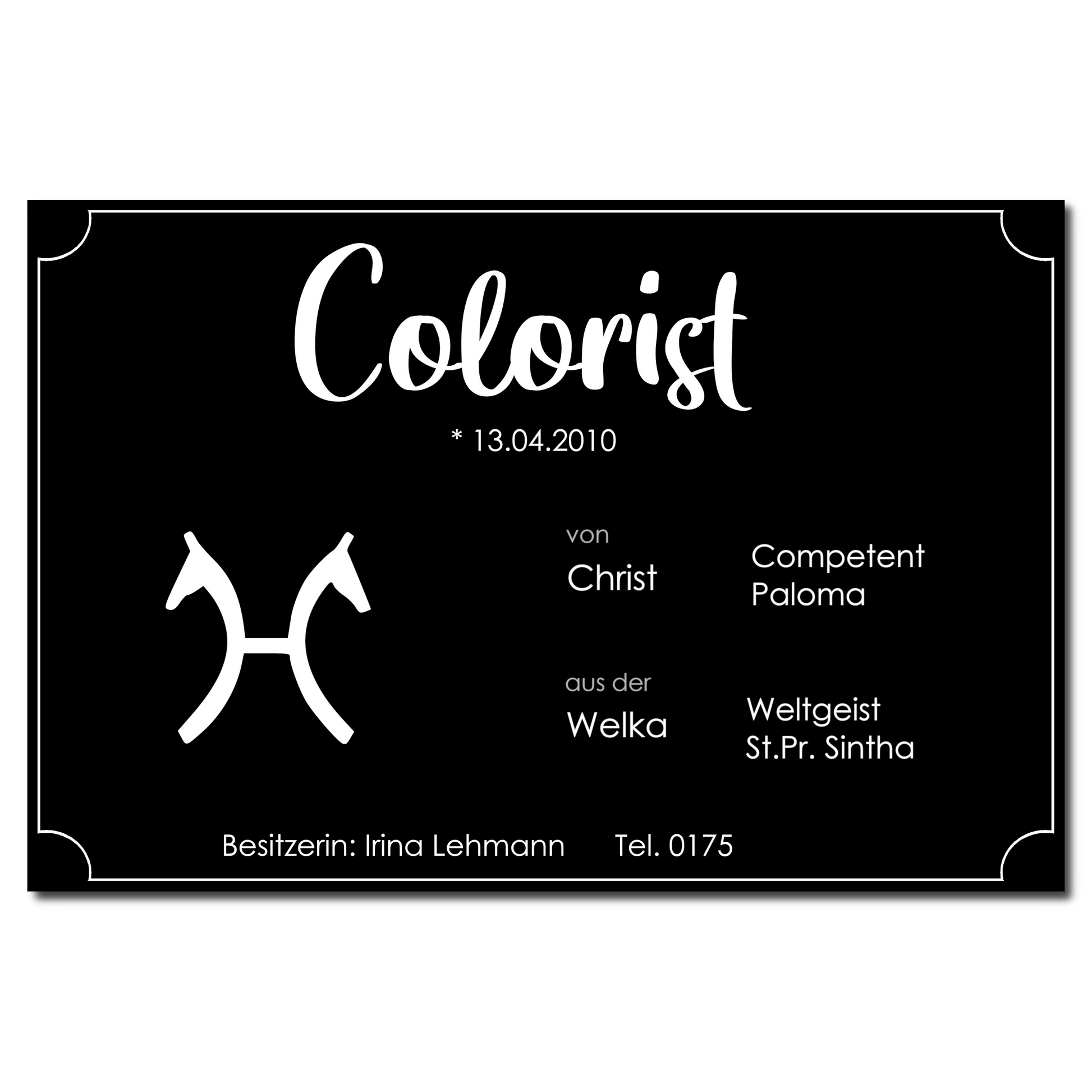 Dein Pferd ist einzigartig – warum sollte sein Boxenschild es nicht auch sein? Mit unseren individuellen Boxenschildern zeigst du Persönlichkeit, Stil und Liebe zum Detail – ganz ohne Bilder, dafür mit einem klaren, edlen Design.