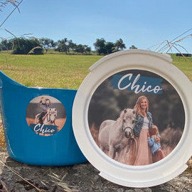 Mit der 17-Liter-Flexischale Picture bekommt dein Pferd eine ganz besondere Futterschale: Auf dem Deckel befindet sich dein persönliches Wunschbild – ergänzt durch eine individuelle Beschriftung. So wird aus einer praktischen Schale ein echtes Unikat für Stall, Weide oder Turnier.