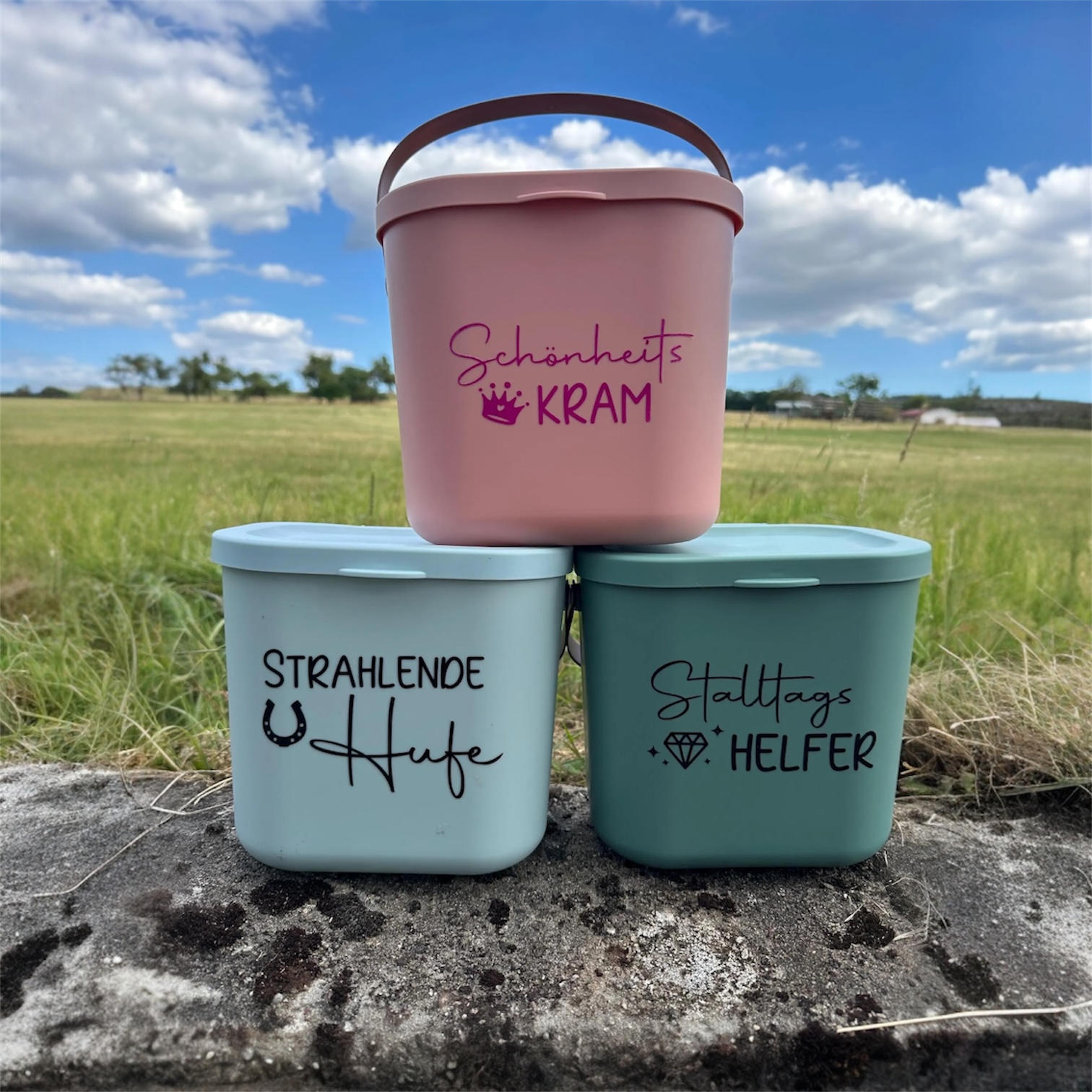 Unsere vielseitige Leckerlibox ist der ideale Begleiter für Stall, Reitplatz oder Zuhause. Ob als Futterbox, Stallapotheke oder für Leckerlis – mit deinem Wunschtext und Motiv wird sie zum persönlichen Unikat. 💖